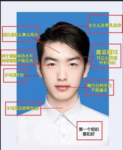 ★ 不可戴耳饰、项链等饰品,嘴巴闭合不能露齿
