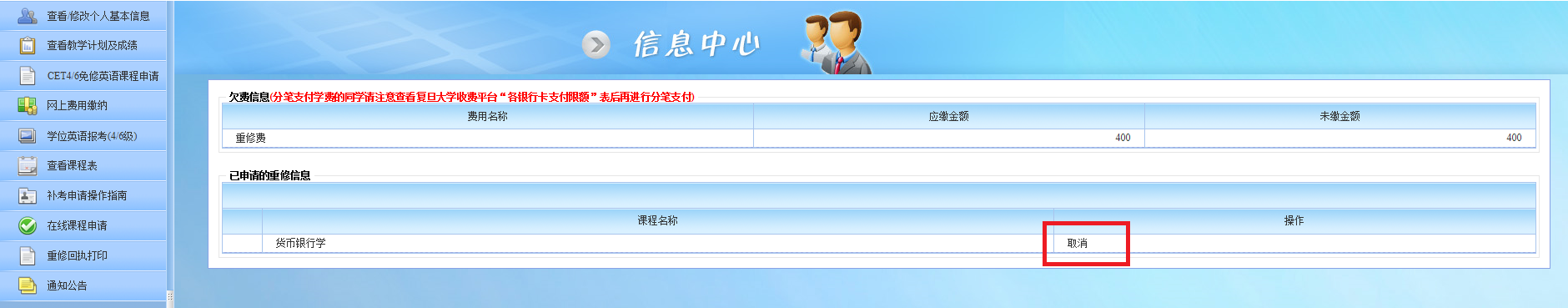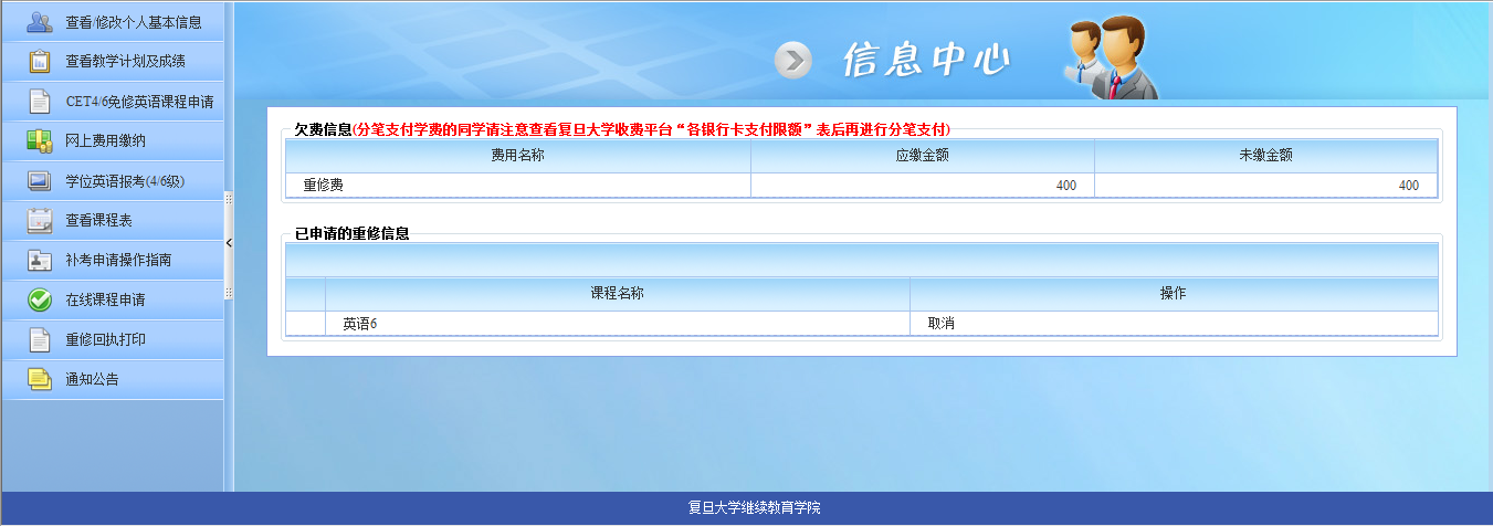 注意:课程重修一旦缴费成功,一律不得取消、更换及退费。