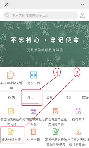 1、关注“复旦继续教育”公众号