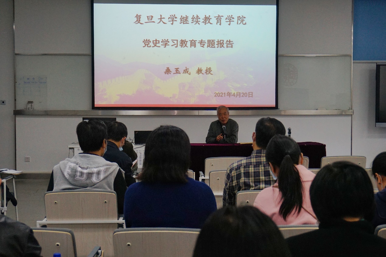 4月20日下午,继续教育学院邀请校党史专家宣讲团成员、国际关系与公共事务学院桑玉成教授来学院作党史学习教育专题报告,学院全体教职工参加,学院总支书记聂叶主持本次报告会。
