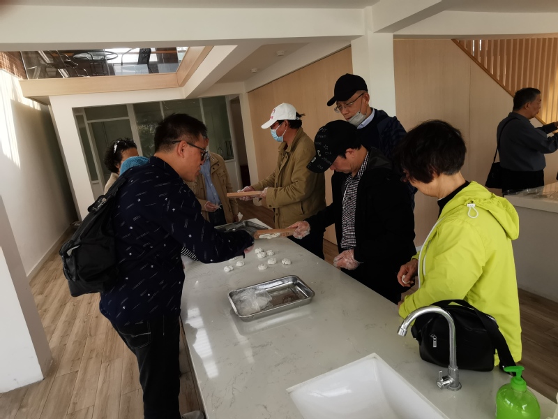 在新村乡稻米文化中心,展现在大家眼前的是一个融和了稻米加工、营销、科普教育、文化展示为一体的农旅综合体。包含稻米文化馆、米食制作体验馆及研学教室以及精品民宿稻香花舍。通过稻米大事记、新村产业发展历程、稻米加工、营销、科普等文化展示,讲述了一个新村发展的米故事。最令老师们兴奋的是体验米食制作,在带教阿姨的讲解示范下,大家纷纷动手,筛下细粉、上模成型,旺火蒸熟,品尝劳动成果。