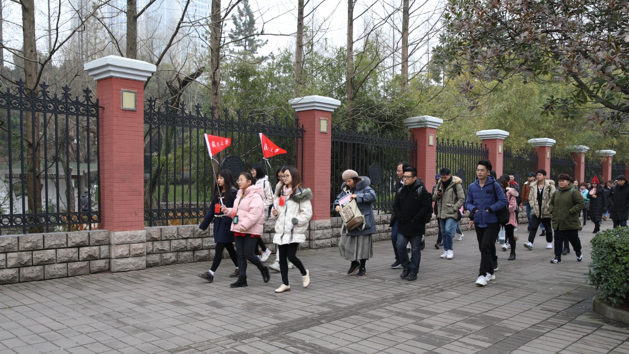 为让同学们尽快熟悉校园,对复旦人文地标与复旦精神有一个初步的感性认识,当天还安排了四个时段各一个小时的校园导览与校史馆的参观活动,由沈滢、王爱雪老师带领预约前来的同学,由第六教学楼、文科楼、校正门、曦园、光华楼、注册考务中心、第四教学楼、逸夫科技楼、相辉堂、校史馆、档案馆、燕园、国权路经世书局的路线进行导览。校史馆内,则由志愿者为大家讲解复旦校史。举着小红旗行走在校园的新同学队伍,成为当天校园一道亮丽的风景线。