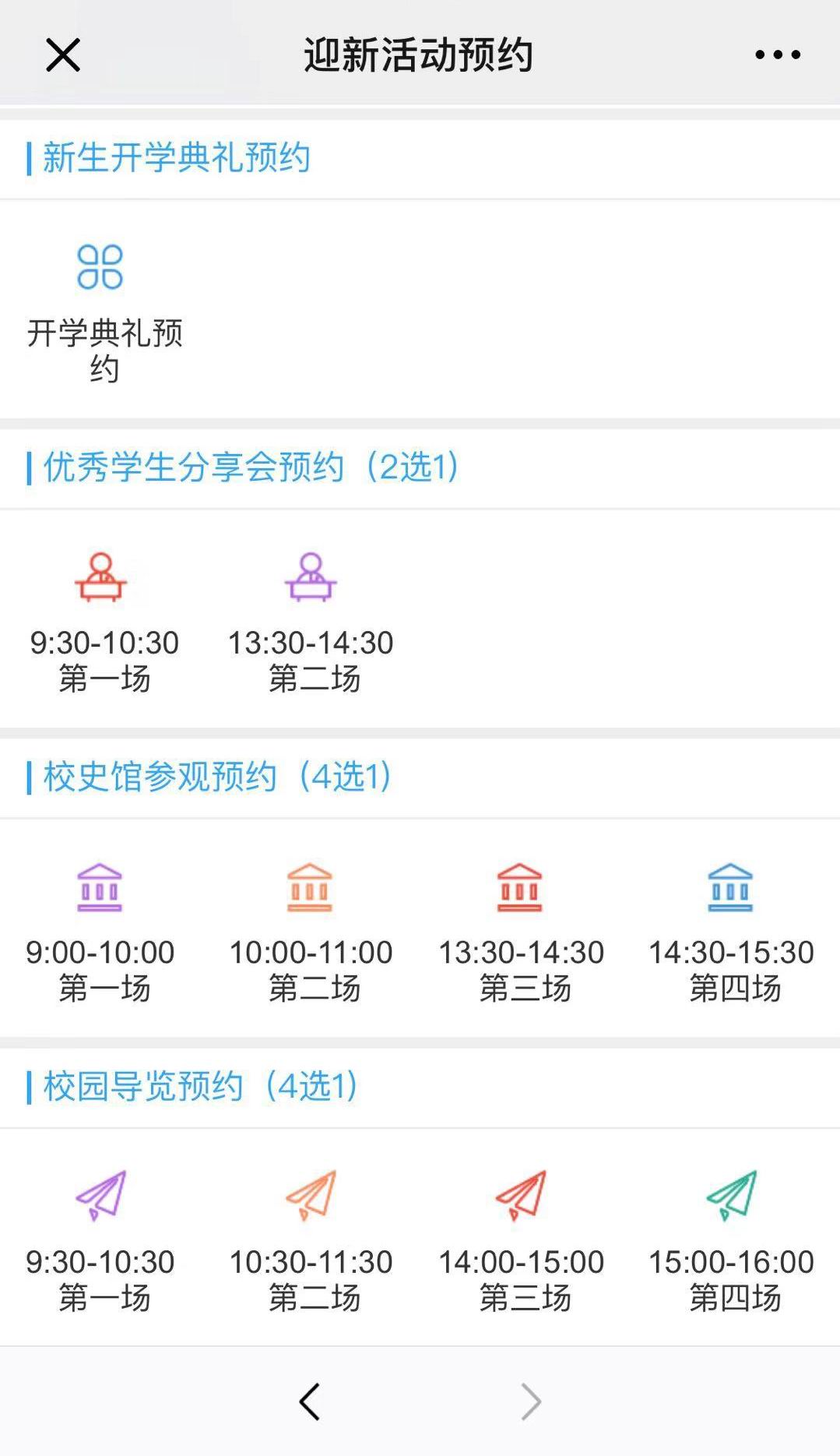 本次迎新活动的一大特点在于,为新同学开启了信息化之旅。不仅是新生的注册通过手机操作,开学典礼、老生经验分享以及校园校史导览的预约、课表、教材查询等功能操作,也全部通过手机网上预约的方式进行,让新同学真实体验到了信息化的便捷。我们提前一个月就开启了手机预约通道,所有收到录取通知书的新同学,在关注继续教育学院公众号之后,即可用自己的学号登录并进入预约界面,预约参加各项迎新活动。