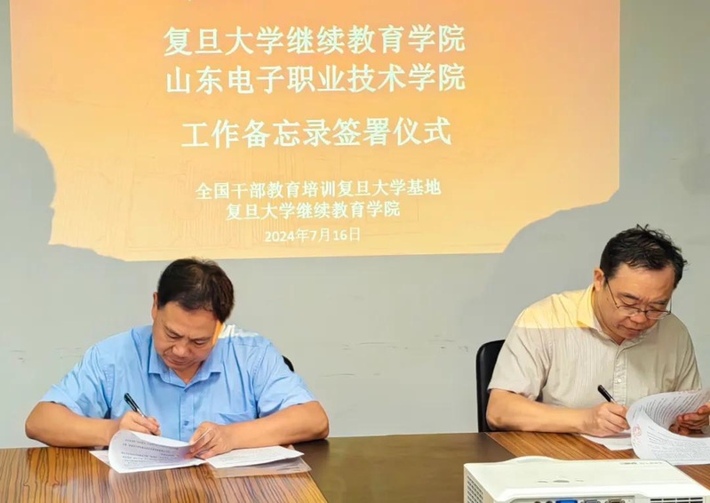为增强职业教育适应性,加快构建现代职业教育培训体系,2024年7月16日,我院与山东电子职业技术学院签署工作备忘录协议。437ccm必赢国际版继续教育学院院长胡波、副院长葛宏波,山东电子职业技术学院院长张建臣、副院长梁会亭、宣传统战部部长聂莺等相关领导出席签约活动。