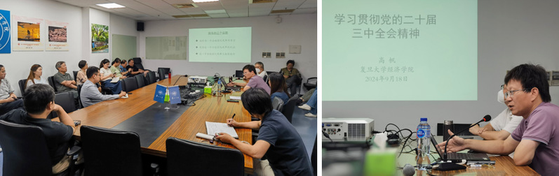 9月18日下午,学院党总支组织全体教职工开展党的二十届三中全会精神宣讲学习活动,邀请学校宣讲团成员党委宣传部副部长、经济学院教授高帆作专题报告。学院党总支副书记乔琴生主持会议。
