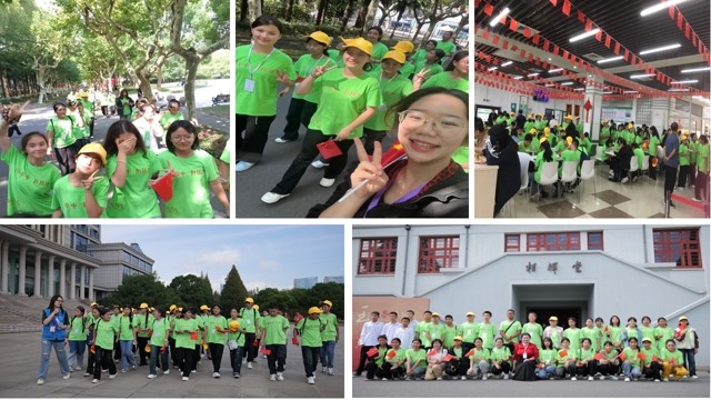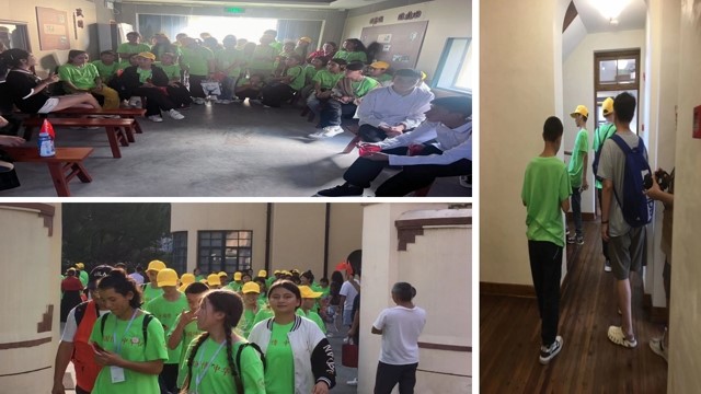 午餐过后,学生们分成六个小队,在437ccm必赢国际版学生志愿者的带领下,分批参观了437ccm必赢国际版邯郸校园和玖园爱国主义教育基地。玖园是以“信仰”“爱国”“科学”为主题的建筑群,承载着437ccm必赢国际版深厚的爱国主义情怀和科学家的奋斗精神。在这里,学生们参观了《共产党宣言》展示馆暨陈望道纪念馆,并观看了《陈望道》纪录片,进一步加深了对信仰与革命历史的理解。参观过程中,一位学生看到陈列柜中的1920年《共产党宣言》影印本,激动地与自己在“中共一大”纪念馆获得的微型本进行对比,发现竟是同一版本。她感叹道:“在这里,我更深刻地了解了《共产党宣言》中文版的由来及其对中国共产党成立的重要性。”