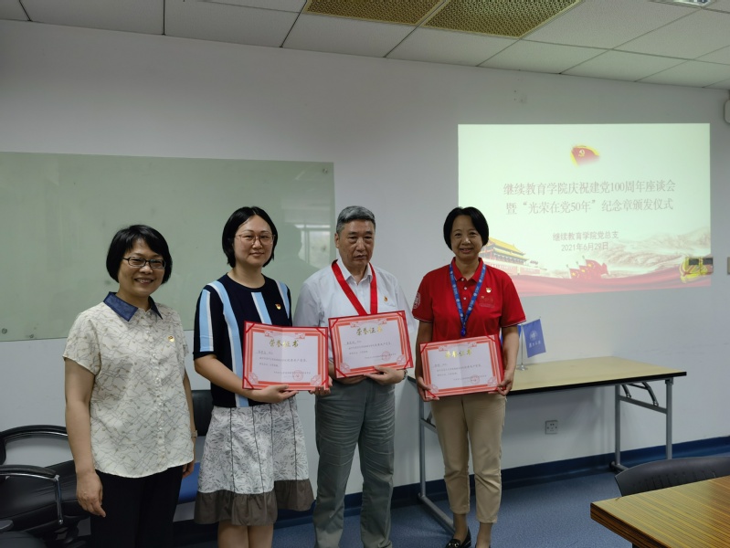 在建党100周年来临之际,6月29日上午学院党总支召开庆祝建党100周年座谈会暨“光荣在党50年”纪念章颁发仪式。学院党总支书记聂叶主持会议。学院全体在职党员、民主党派教职工、退休党员代表参加会议。