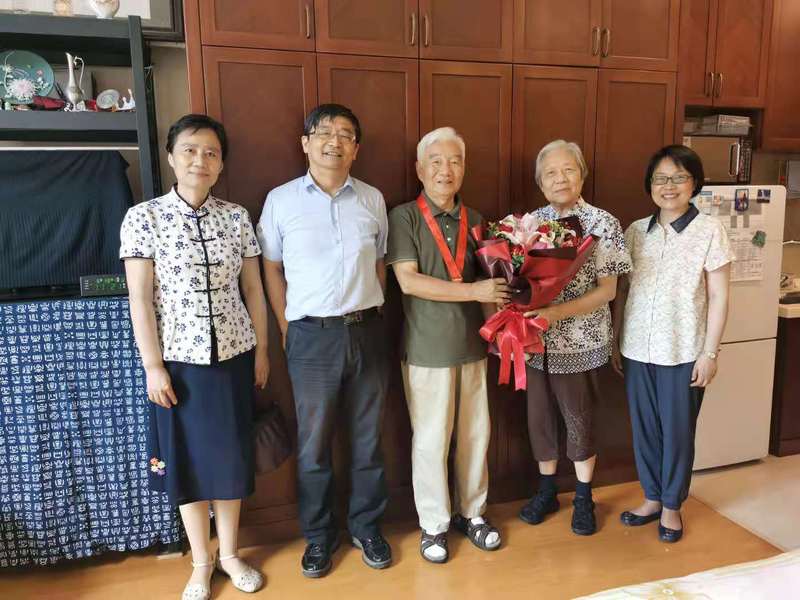 会议前,学院领导还走访慰问了未能参加本次活动的“光荣在党50年”老党员陈建新老师,在家中颁发纪念章,献上鲜花并合影留念,为老党员送去党和学校学院的亲切关怀和温暖问候。