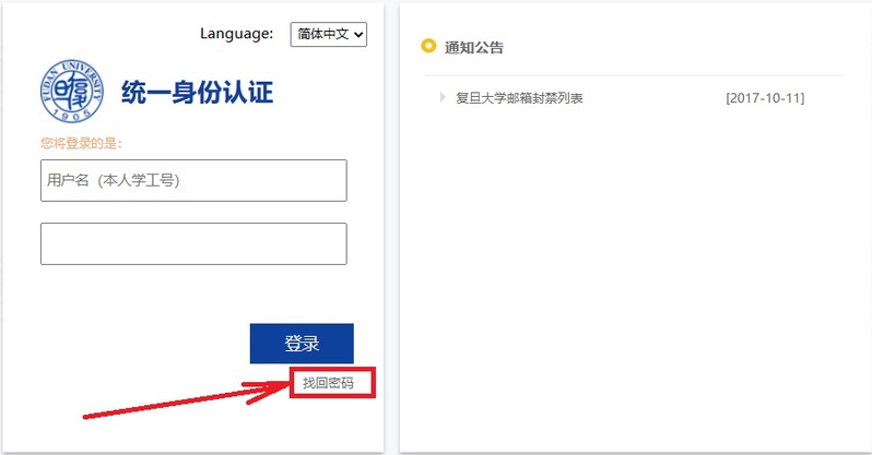在浏览器中打开网页 https://uis.fudan.edu.cn/authserver/login