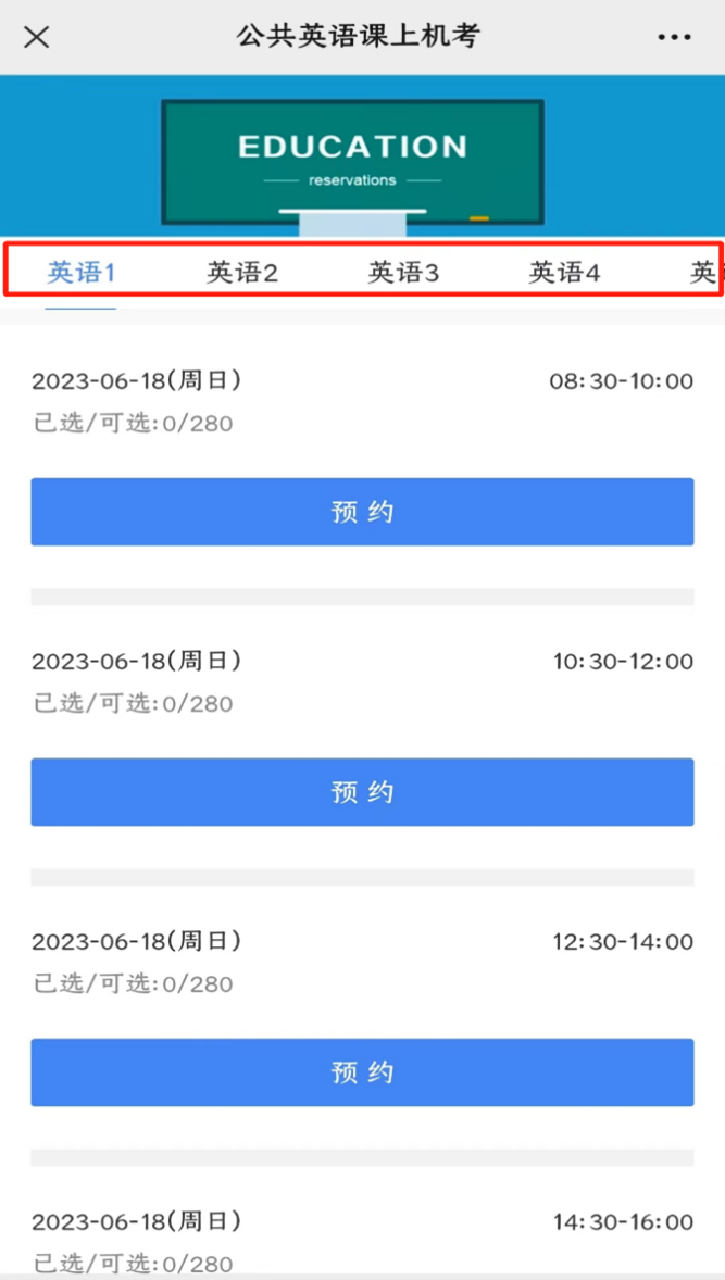 开放的场次只可预约一次,不可重复预约。请先确认其他补考课程考试时间后,再预约公共英语课毕业补考,以免考试时间冲突。