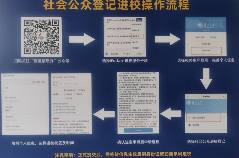 如需委托他人代领的,请代领人本人务必至少提前一天在微信公众号“复旦信息办”上预约登记入校(具体见操作流程),点击“社会公众进校登记”,校区请选择“枫林校区”,并选择上午进校。